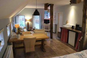 De boerderij staat midden in het authentieke dorpje Weerdinge. Op loopafstand treft u een snackbar en twee restaurants; ideaal voor als u geen zin of tijd heeft om te koken. De landelijke bosrijke omgeving leent zich perfect om te gaan lopen, fietsen of rond te touren. Uw ontbijt kunt u zelf klaarmaken in uw eigen keuken met kookplaat, oventje, koelkast. Wilt u liever dat wij een uitgebreid vers ontbijt verzorgen, dat is mogelijk tegen een meerprijs. Bij aankomst kunt u dit aan ons kenbaar maken.