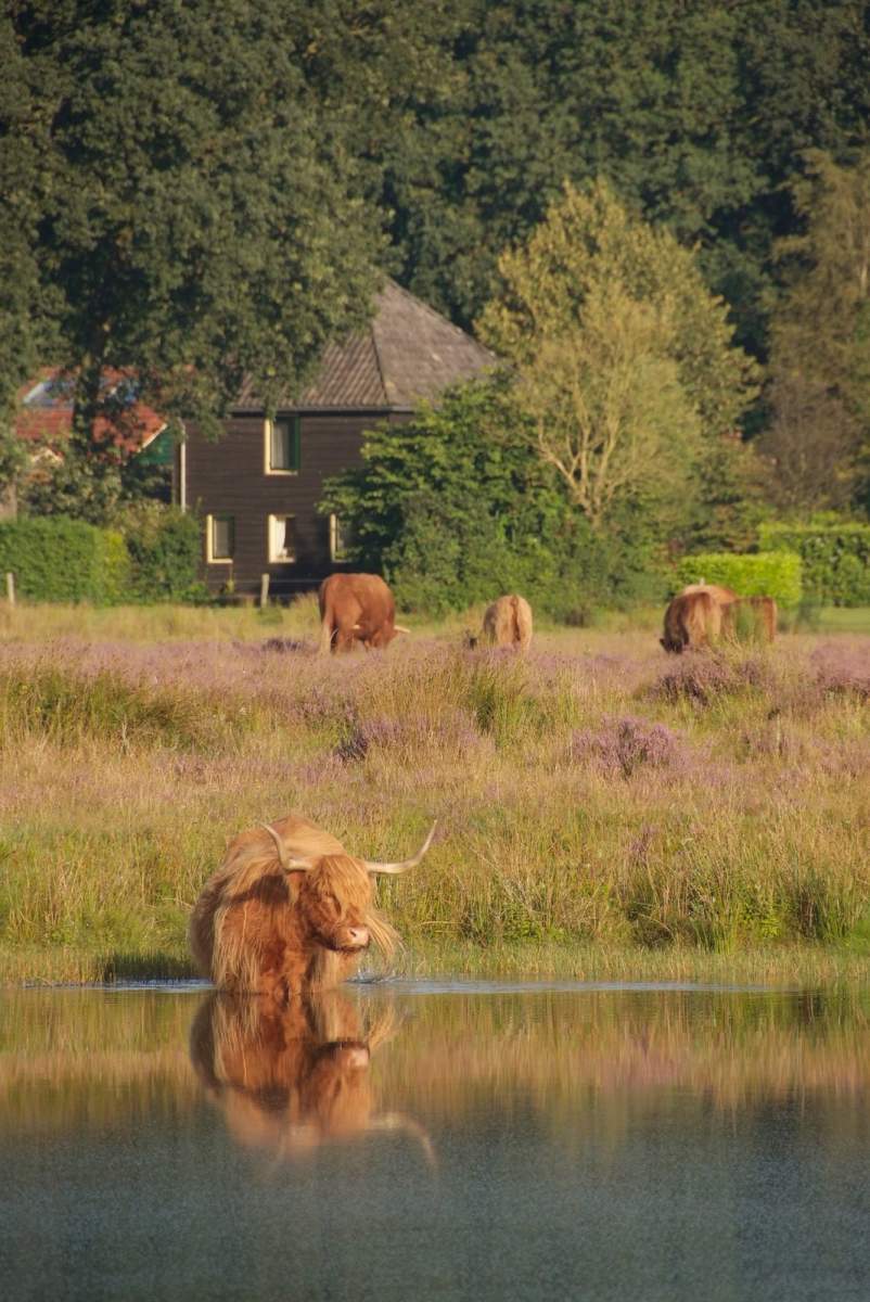 Vanuit het heidehuisje kijk je zo het natuurgebied in. In de tuin lopen onverwachts reeën. Schotse Hooglanders zijn de buren. Vossen sluipen ‘s-nachts rond het erf en dassen spelen in de verte. Op hetzelfde erf staat een vogelkijkhut, waar je een ontmoeting kunt hebben met allerlei vogels, maar ook hazen grazen de sprietjes tussen de heidestruiken af. Voor vogelaars is deze hut een eldorado. Het is goed om te weten dat deze hut alleen door gasten wordt gebruikt.