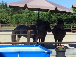 Buddy onze Australian cattle dog en onze IJslandse paarden, Ikja, Kimmie en Caes.