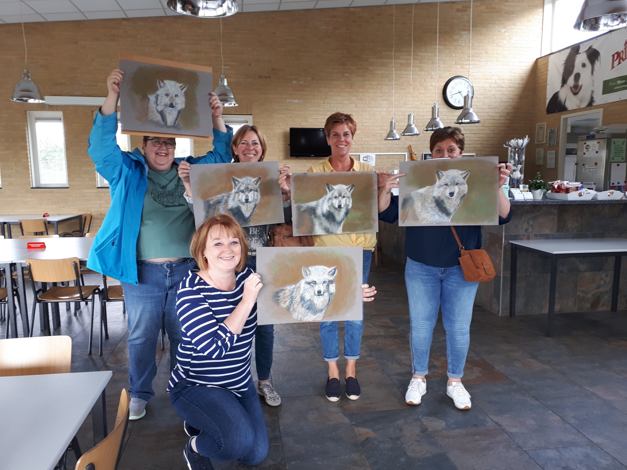 Tijdens deze gezellige en leerzame workshop gaan we met zijn allen een wolf tekenen. Dit doen we in pastelkrijt op velourspapier. Het velourspapier is een dik vel papier, met daarop een fluwelen laagje. Dit zorgt er samen met het krijt voor, dat de tekening een zacht karakter krijgt. Dat komt goed uit, want zo komt dit mooie dier goed tot zijn recht. Tekenervaring is niet nodig. Ook wanneer je nog nooit hebt getekend, is deze workshop goed te volgen en neem je een mooi resultaat mee naar huis.