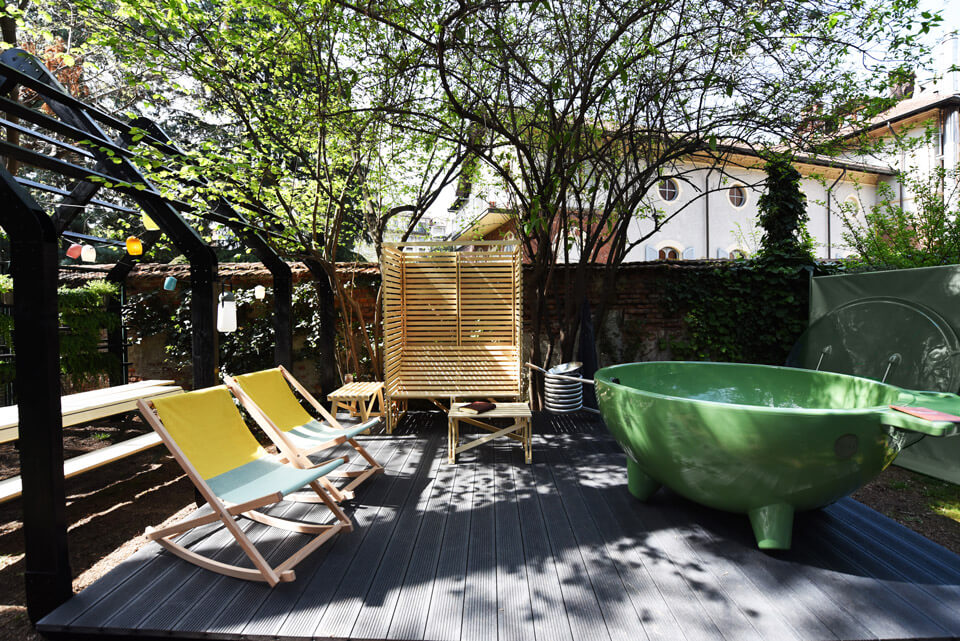 Dit prijswinnende en iconische designproduct, ontworpen door Floris Schoonderbeek, laat je ontspannen en werkt verrassend eenvoudig: het buitenbad maakt alleen gebruik van natuurlijke circulatie. Stook een vuurtje in de spiraal, vul de tub met water en het water zal zich vanzelf verwarmen doordat het vanzelf door de spiraal gaat stromen.