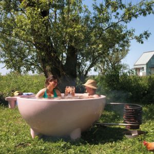 Het is een mobiel en houtgestookt buitenbad: door wat hout te verzamelen, een vuurtje te stoken en de tub te vullen met water kun je overal genieten van een warm bad. Met buiten baden kun je een plek beleven op een nieuwe manier: je gaat op avontuur in je eigen achtertuin of creëert comfort in de middle of nowhere.